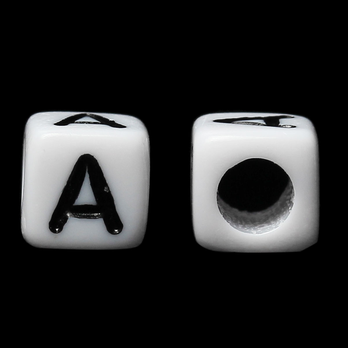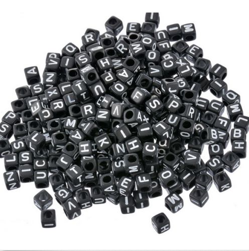 6.5mm assorted cube alphabet beads (black) (500 pieces). Hole runs horizontal and is approximately 3mm wide. Wholesale 1000 pcs alphabet letter beads, white, cube, black letter, mixed. Transparent glass with 1mm hole size. We offers cubes beads products.